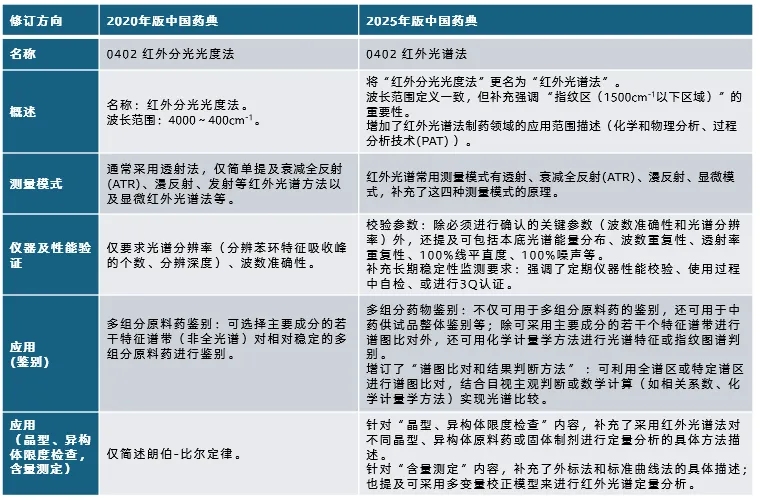 红外光谱法是药品定性分析的重要手段,常用于原料药、辅料及制剂的成分确认、晶型鉴别和杂质鉴定等。2025年版中国药典对通则0402进行了多项重要修订与升级,旨在与国际标准(如USP、EP)协调,强化方法验证要求,提升药品质量控制的科学性和规范性。