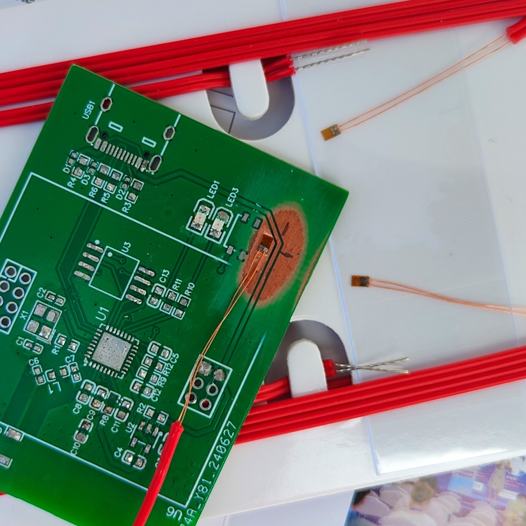 性能优势精准测量具备高精度阻值和稳定灵敏系数,能精确捕捉微小应变变化,为应力分析提供可靠数据。 广泛适应-30~80℃ 的工作温度范围,可在复杂环境稳定工作,减少温度干扰。 安装便捷基底尺寸设计利于与被测物贴合,合适的漆包线和 PVC 导线长度方便安装布线。 应用范围(PCB 行业)制程环节测试无论是 PCB 电路板分板裁切,还是 SMT 工序、CPU 与螺丝组装,应变片都能实时监测应力应变情况,降低因制程应力导致的产品不良率。 检测环节评估在 ICT/FCT/BGA 等检测过程中,应变片精准反馈 PCB 应力应变,为评估电路板性能和可靠性提供关键数据。 环境模拟试验面对振动、跌落、冲击等模拟实际使用环境的试验,应变片能持续跟踪 PCB 的应变响应,提前预判产品在复杂工况下的潜在故障。 图片展示